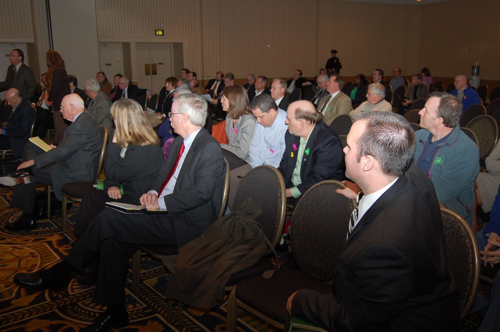 The Bicycle Coalition of Greater Philadelphia organized supporters to attend the session and supplied them with bike and ped pins. Rep. Meehan gladly accepted a bike pin at the beginning and wore it throughout the session. He recalled that Congressman Earl Blumenauer (D-OR) wears one regularly. Meehan and his office have met three times with the Bicycle Coalition in the past several weeks to discuss Transportation Enhancements and Safe Routes to School — two primary funding pots for bike and pedestrian projects — and about the potential for a multi-use trail through his district that would link up Valley Forge Historic Park to the John Heinz Refuge. His willingness to listen and talk about the importance of trails to link together local communities is encouraging and we welcome his support as the transportation bill takes form.