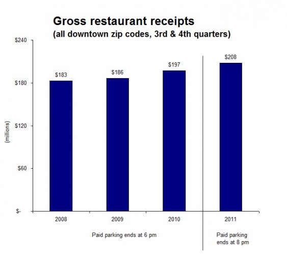 Gross receipts for downtown restaurants have actually risen since the parking meter hikes went into effect.