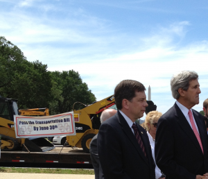 Do the math, said Sen. John Kerry. Every billion dollars invested in infrastructure yields an estimated 27,000 to 35,000 jobs. This is a $109 billion bill — “that’s several million jobs.” He echoed a point Schumer had made, that the economy is recovering but is being held back by lingering high unemployment in the construction sector. “Those folks would go to work tomorrow if this bill were passed,” Kerry said, adding that it was “an utter disgrace that people would say they’re with the American people and then refuse a bill that would put them back to work.”