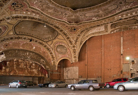 And there might be no better illustration of backwards attitudes toward cities and public space than this now world famous space in Detroit, the former Michigan Theater: