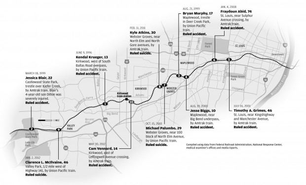 The problem is the tracks run past a large apartment complex and houses on one side, with more houses, shops and a MetroLink station on the other,” he wrote. “The nearest [automobile] crossing is almost a quarter mile away. People just walk over the rails instead. “They come and go all the time,” [Sgt. Michael Martin, who helped investigate Jesse’s death] said.