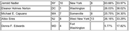 Compare that with New York City Democrat Jerrold Nadler: 64 percent of his constituents are car-free, with 54 percent of them riding transit. My non-voting delegate here in DC, Eleanor Holmes Norton, presides over a city where 26 percent of residents don’t have a car and 38 percent ride transit.