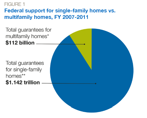 Overall, the report suggests, federal real estate interventions undermine market trends toward the development of more walkable places. About 85 percent of federal housing subsidies flow to single-family housing over multi-family, although only 65 percent of American households are homeowners and the majority of renters live in multi-family buildings. This has hampered the market for rental housing even as demand for multi-family rental housing has soared following the housing bust.