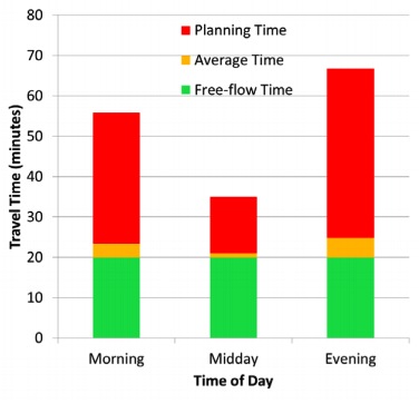 If the PTI for a particular trip is 3.00, a traveler would allow 60 minutes for a trip that typically takes 20 minutes when few cars are on the road. Allowing for a PTI of 3.00 would ensure on-time arrival 19 out of 20 times.