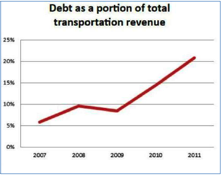 Meanwhile, the state has been consistently reducing its contributions to local streets. Since 1998, the share of statewide funding that was dispensed to localities for road maintenance has fallen from 32 percent to 19 percent — a policy which is tantamount to increasing local taxes. Over that time, meanwhile, the share of state funds being used for highway expansion increased from 43 percent to 47 percent. To make matters worse, transit suffered a 10 percent cut in the 2011-2013 budget, and this new budget does not restore that funding.