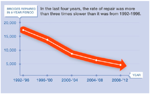 In order to get a handle on the problem, T4A recommends prioritizing repair projects over expansions and removing funding restrictions on bridge repair.