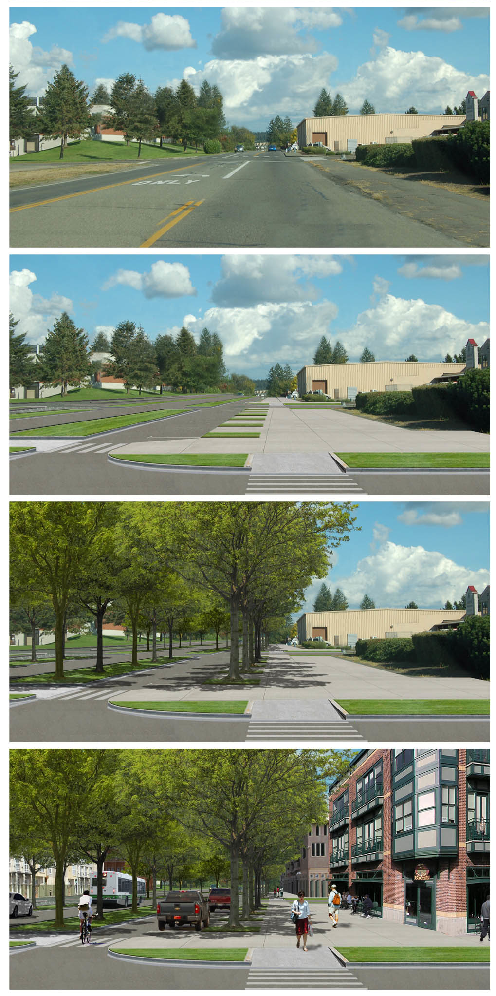 So they worked with the community to transform the whole plan. After a three-hour meeting with 100 soldiers, family members, civilian staff and installation leadership — plus a week-long charrette and 600 online survey responses — they articulated this vision: “In support of the mission, Soldiers and Families we will create a sustainable community of walkable neighborhoods with identifiable town centers connected by great streets.” They called for preserving training ranges by using more compact and mixed-use development, modeled after small towns in New England or the Midwest, and implementing an urban growth boundary. They wanted to see training areas within walking distance of barracks and recreation areas and multiple transportation options.