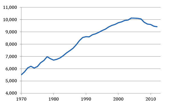 But now per capita driving has declined eight straight years in America. Total vehicle miles traveled (VMT) hasn’t really budged in five years, and remains below its peak. A number of things have fundamentally changed since the time when you could chart driving behavior into the future using an upward line, according to a new paper by the State Smart Transportation Initiative, a think-tank based out of the University of Wisconsin which counts 19 state DOTs among its partners.
