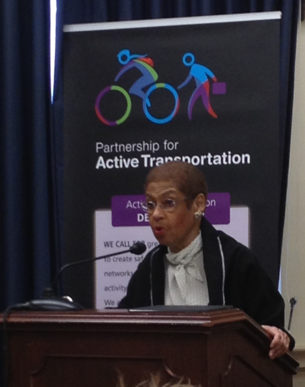 The groups launched the partnership this morning on Capitol Hill, in one of the House office buildings, under the banner “Safe Routes to Everywhere,” a spin on Safe Routes to School. Rep. Tom Petri (R-WI), a longtime bike advocate and chair of the Subcommittee on Highways and Transit, and Del. Eleanor Holmes Norton (D-DC) made some opening remarks cheering on the group. Rep. Dan Lipinski (D-IL) stopped by later and gave his congratulations.