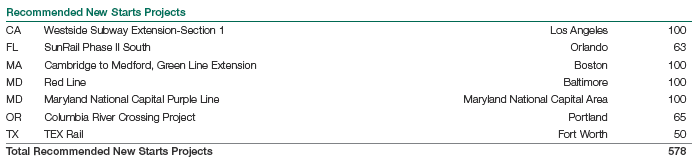 Transit expansion grants that have already been approved by Congress and will be proceeding with or without the funding boost include light rail in Honolulu, the Hartford-New Britain busway, and the Central Corridor light rail line in the Twin Cities.