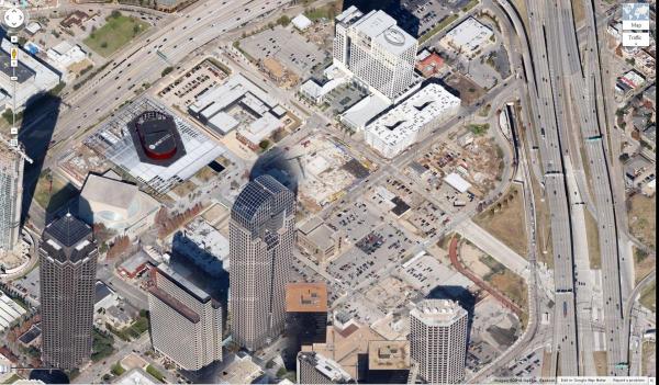 We swapped out the picture we used in the last round for one that our readers assure us is more up to date. There has been a little bit of infill development since the last one was taken. But the area can’t attract unsubsidized private development, according to Patrick Kennedy of Walkable Dallas-Fort Worth, because it’s been so blighted by I-345, which you can see on right edge of the photo. Kennedy has been one of the loudest advocates for tearing down the freeway.