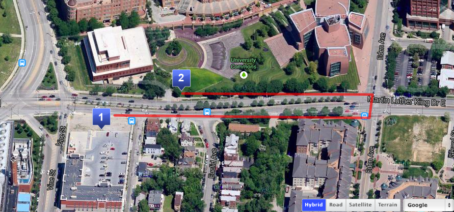 Here’s an unfortunate scenario in Cincinnati. A key stretch of Martin Luther King Boulevard operates much like a moat. On one side of the street visitors to the University of Cincinnati stay at the Hampton Inn. Almost directly across the street is University Commons — a park area designed to be a “contemplative space.” Wouldn’t it be nice if visitors had access?