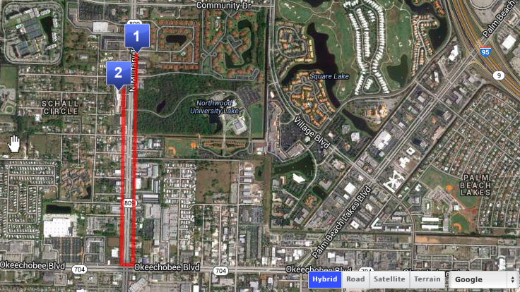 This submission comes to us from the excellent Florida Massacre Twitter account, which pointed us to West Palm Beach’s dreadfully isolating North Military Trail. Amazingly, this uncrossable barrier is right next to Northwood University.