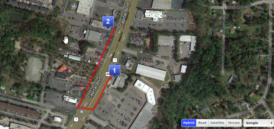 This one comes to us from David Edmondson, who first blogged about the lack of crosswalks on this nine-lane suburban thoroughfare in 2011. Crosswalks are spaced about 0.3 miles apart on this stretch of Capital Boulevard.