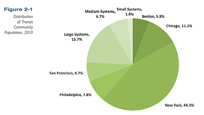 About 75 percent of Americans who live within a half-mile of a fixed transit station live in just five cities. Image: Federal Transit Administration