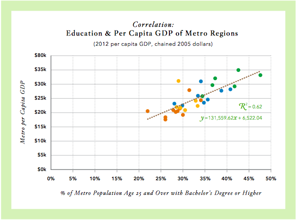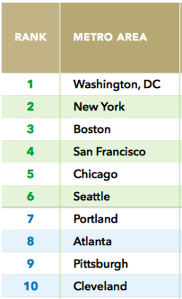Educational attainment — percentage of the population over 25 with a college degree — was also correlated with walkability. Washington, D.C., for example, which was rated the most walkable region in LOCUS’s report, also has the highest educational attainment in the country: 48 percent of its residents over 25 have at least a bachelor’s degree.