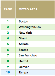 The places expected to grab the largest share of walkable development in the coming years are regions seeing dense development not just in their central cities, but in their suburbs as well, LOCUS reports. Detroit, surprisingly, is a place that’s becoming more urban. That’s because the Detroit region has seen a large share of its growth recently in increasingly walkable suburbs like Royal Oak and Birmingham, the report says. Meanwhile, cities like Philadelphia, Chicago, New York, and Cleveland lost points in the ranking of cities with potential for walkable growth, because their walkable development is still largely concentrated in the central city area and not the suburbs.