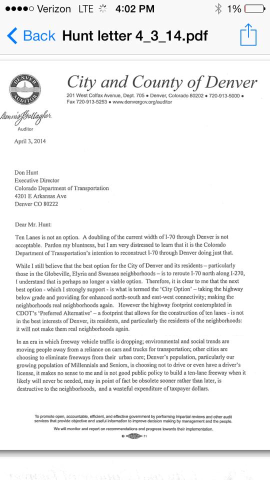 There has been a leadership vacuum around the project since then, Barnes-Gelt said, especially from prominent elected leaders. One notable exception is Denver Auditor Dennis Gallagher, who came out against the project a few months ago.