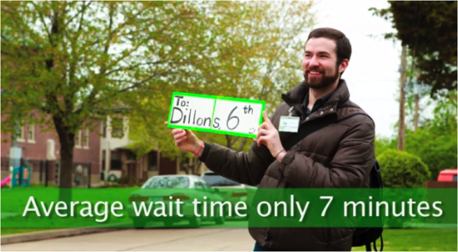 That’s the mission of Jenny O’Brien, who launched Lawrence OnBoard last year in her Kansas town. She sent 23 volunteers out with dry-erase boards announcing their destinations. Ninety-five percent of them got a ride in less than half an hour, and the average wait time was less than seven minutes. That told her she was onto something, and she set about operationalizing the concept.