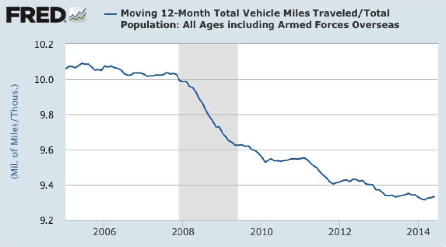 But better late than never, right? Here is a Talking Headways short in which we discuss the Federal Highway Administration’s recent (er, not so recent anymore) announcement that Americans are driving more than any time since 2008 and so we’d better spend lots more on highways. Here are two quick visuals to help you understand just one reason we thought their reasoning was flawed: