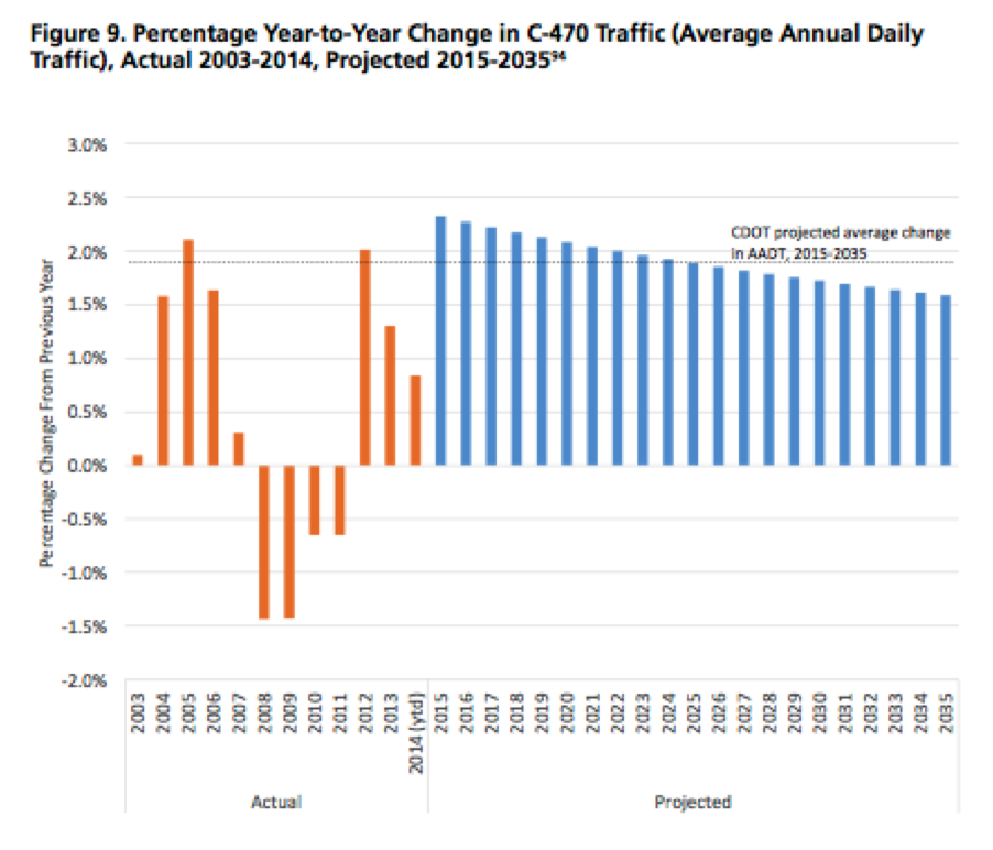 CDOT does not explain why it expects an almost four-fold increase in traffic growth when current trends are moving in the opposite direction.