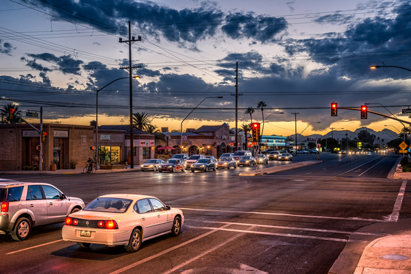 West of downtown Tucson, Arizona, the city runs up against the interstate first and then the mountains, cutting off development. But east of downtown, the city sprawls on for miles. The Sunshine Mile, a shopping and dining corridor centered on Broadway Boulevard, stretches two miles just east of downtown, between Euclid Avenue and Country Club Road.