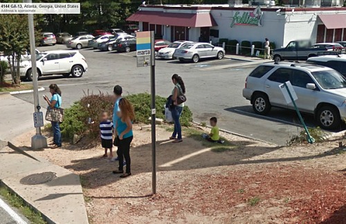 The above example comes from Atlanta’s notorious Buford Highway, where pedestrian infrastructure of all types has been completely neglected in favor of wide open asphalt.