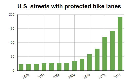 However, dozens of cities in most U.S. states have now begun building protected lanes with the help of other publications.