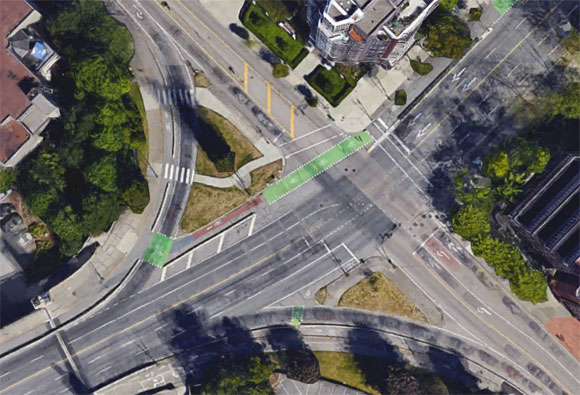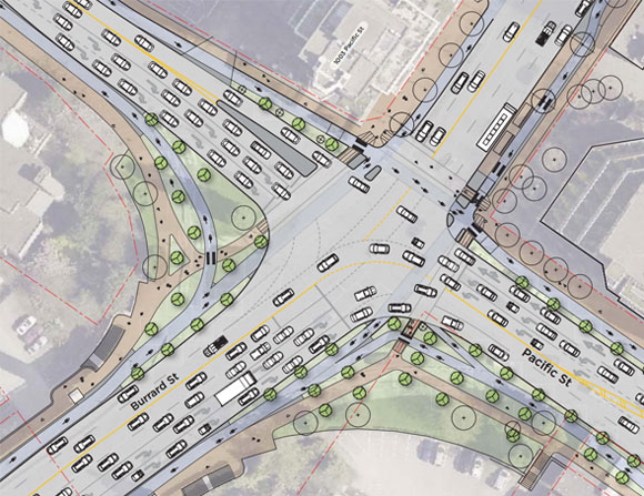 Vancouver presented the new plans for the bridge at a public meeting yesterday. Here’s a look at the intersection redesign proposed for the north end of the bridge: