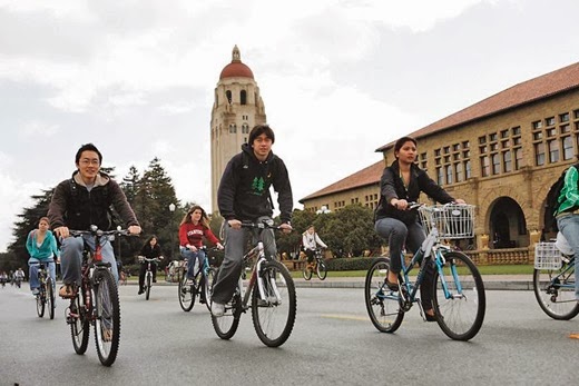 - Stanford is not alone. College campuses in general support biking like nothing else. Of the top 100 census tracts for bike commuting, 68 are within two miles of a campus.