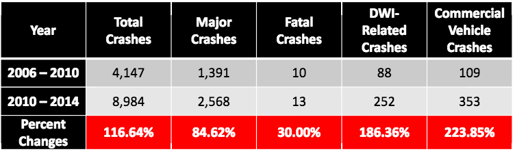 The HPD data contrasted crash figures from 2006 to 2010 — when the cameras were in operation — and from 2010 to 2014, after they were banned and removed. At the intersections that formerly had cameras, fatal crashes jumped 30 percent. Meanwhile, total crashes were up 116 percent. And DWI crashes nearly tripled, increasing by 186 percent.