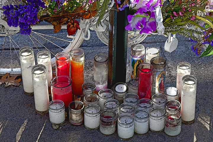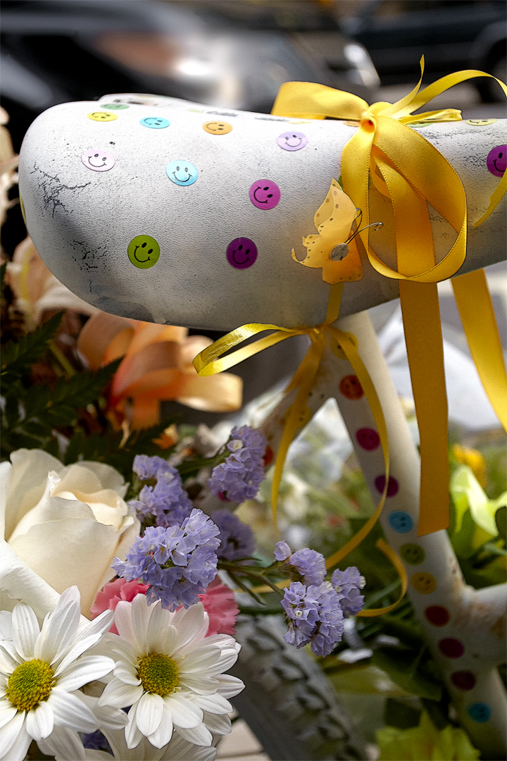 What Barnes didn’t include in the book were the horrific details of the grisly deaths of the people commemorated by these white-painted bicycles. She says she didn’t want to put the reader through that; she just wants to raise people’s awareness and encourage them to be more “spatially aware” and “cognizant of their surroundings.”