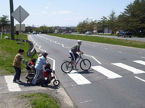 At 11 points in northern Virginia, the familiar straight dashed lines on the road gives way to a series of zig zags. The unusual markings, the result of a pilot project from the Virginia Department of Transportation, are meant to alert drivers to be cautious where the Washington and Old Dominion (W&OD) Trail intersects with the road — and bicyclists and pedestrians frequently cross.