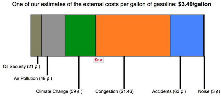 According to Samaras, the social costs of driving add up to about $3.40 a gallon. The current federal gas tax is 18.4 cents per gallon. Obama's proposal would likely add about 10 cents per gallon, Samaras says.