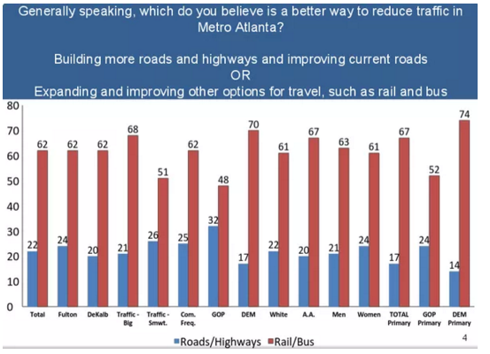 Meanwhile, a series of public opinion polls shows that Atlanta area voters, even suburban ones, are coming around to idea of expanding MARTA. In fact, many polls show they strongly favor it.
