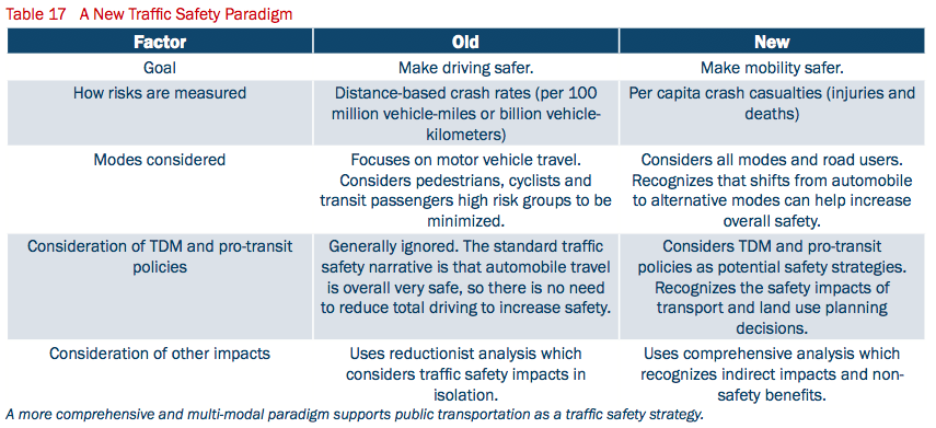 In order for the U.S. to be a leader in traffic safety again, APTA says, safety officials need a “paradigm shift” in their approach, one that views increasing transit use as a key strategy.