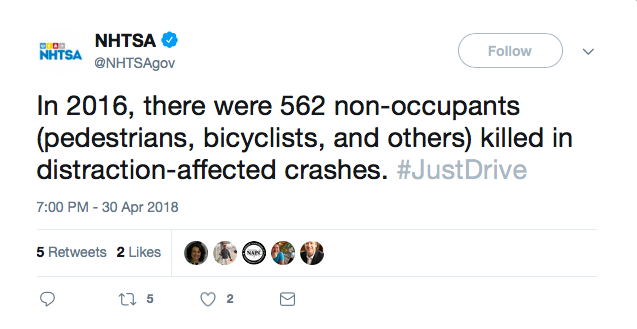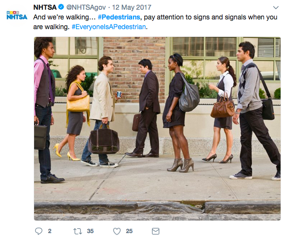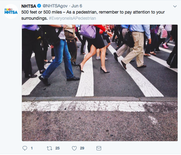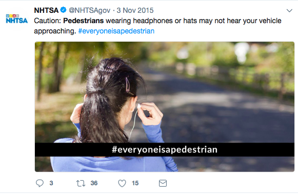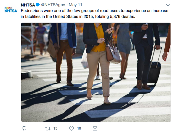 While NHTSA feigned ignorance as to why drivers were killing more pedestrians, it blamed victims for injuries and deaths. Below are six examples of the NHTSA using Twitter to blame deceased pedestrians since 2015.