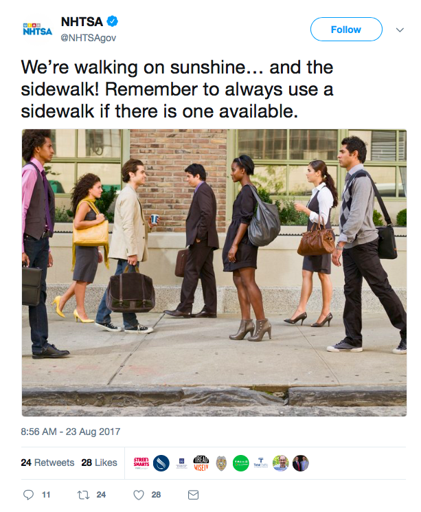 Why mandate safe vehicles and street designs when you can blame Pokemon Go? (Not pictured: all the motorists out of frame playing Pokemon Go.)And here’s NHTSA alerting drivers to daredevils out there who might be listening to music (since motorists themselves are known to abstain) or … wearing hats: The above tweet is one example of NHTSA messaging to operators of multi-ton vehicles. And there was a lot of helmet advice for cyclists — because, again, it’s easier to lecture than to provide safe biking environments.