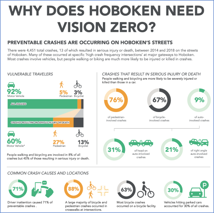 “We know this is just a snapshot in time, and at any point in time we could regress. That’s actually the most likely scenario,” said Ryan Sharp, Hoboken’s parking and transportation director. “It’s incumbent upon us to continue to push forward and not just accept that things have improved, put our pencils down, and quit. There are still plenty of traffic safety hazards that exist in Hoboken; it’s our responsibility to continue to chip away at them.”