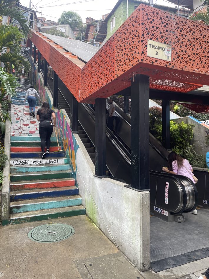 The hilly Comuna 13 neighborhood is also home to the world-famous free outdoor escalators, which were built to carry the neighborhood’s aging population up the steep incline between the region’s urbanized valley, where many jobs were located at the time, and their homes nearly 28 stories above. (I went, but because I didn’t have access to a drone, my pictures don’t capture the sheer scale of this accomplishment; CNN did a much better job.)