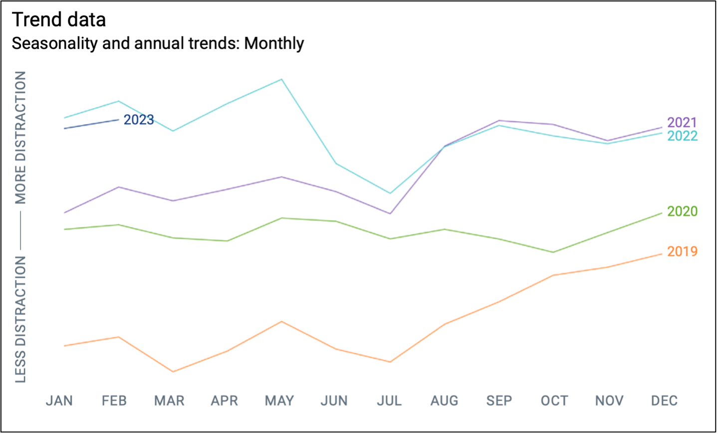 The researchers only looked at distraction events per mile driven rather than per capita or per licensed driver, which means motorists with lengthy highway commutes could potentially skew the data. The analysis also found that distraction went down on weekends nationwide, when roads tend to be less congested, as well as on summer days when motorists aren’t running into as many weather-related slowdowns that might compel them to pay more attention — if only to keep themselves safe from a high-speed crash.
