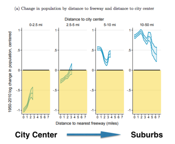 For cities between 50,000 and 500,000 residents, though, getting outside of the niche grant program box can be particularly challenging, not least because the transportation “investments” they were gifted by state and federal agencies diluted their local power. Studies have shown that each freeway built into a city center will result in an average 18 percent population loss —and all the accompanying lost tax revenue and political representation that comes with it —compared to the projected growth those places would have experienced had the freeway not been built.