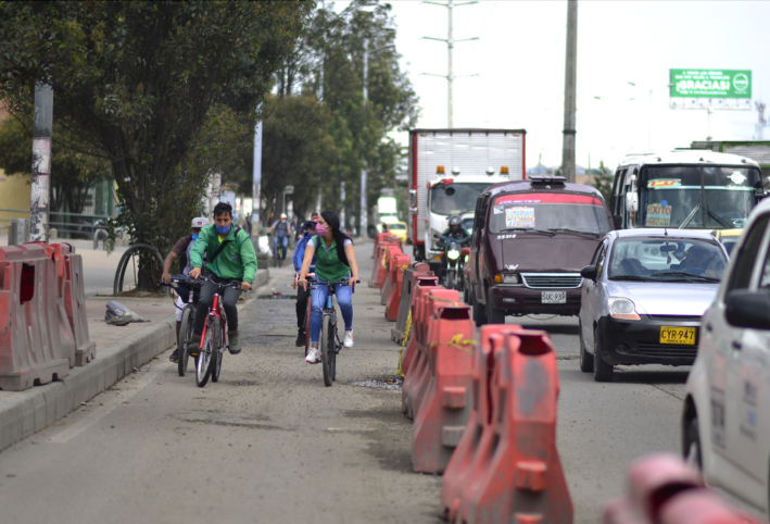 Bogotá’s bike lane build-out hasn’t been as breathlessly documented by photojournalists as the nearly-auto-free fietstraats of Utrecht or the off-road cobblestone paths of Copenhagen. Many of the city’s ciclorutas run on curb-separated medians designed directly down the center of wide roads — a design which some European transportation planners advise against — while many others are separated by low plastic “armadillo” dividers over which a motivated motorist could theoretically drive. It’s difficult to find a photo of a bike lane in Bogotá that doesn’t feature at least a few cars in the background.
