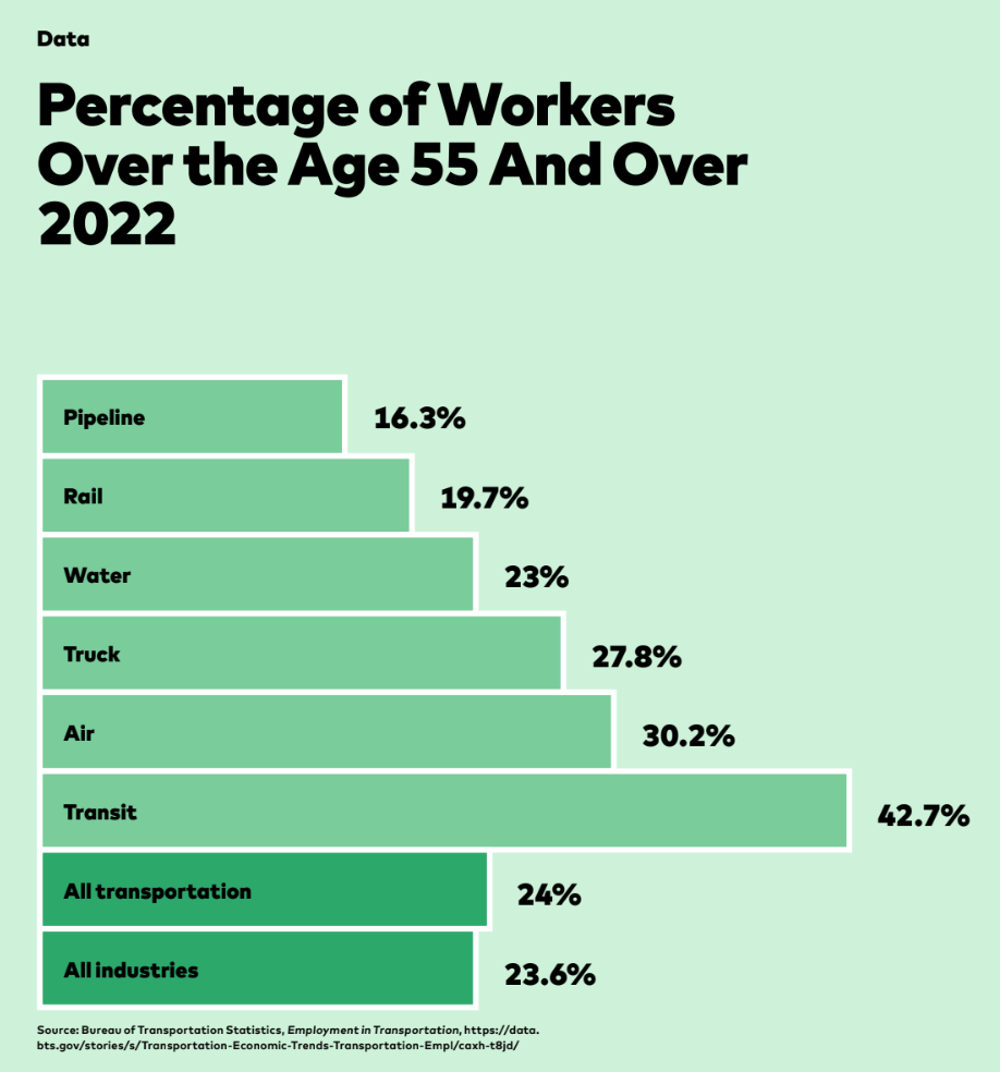 That includes not just bus drivers, but also the administrators who hire them, the planners who plot their routes, the mechanics who keep buses running, and many more. With 42.7 percent of all transit workers over the age of 55 and rapidly approaching retirement, the problem is only poised to get worse.