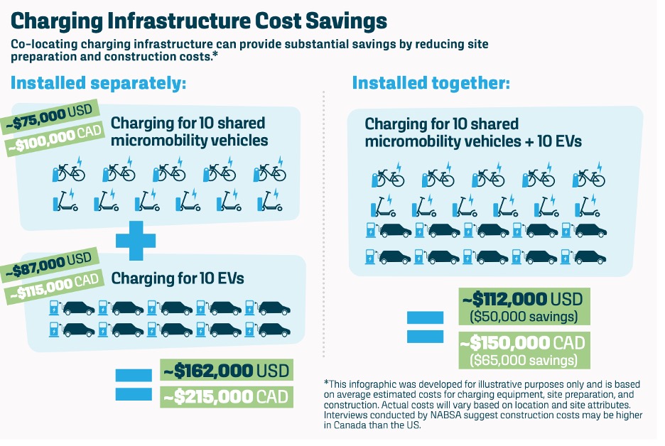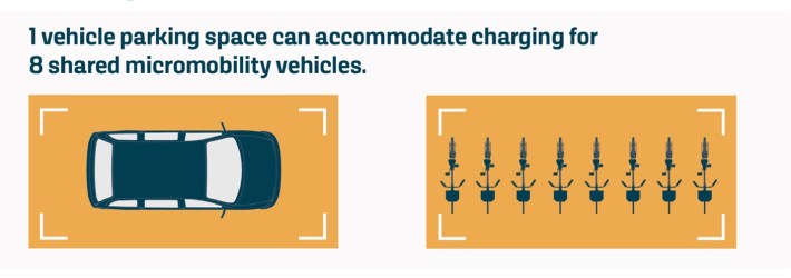 Charging small vehicles in the field, though, also isn’t very cost efficient — at least without up-front government help. Connecting a scooter or bike dock to electricity in the field requires intensive site preparation like digging trenches, or installing solar panels that the report authors say represent “substantial additional cost to the charging station itself,” even if that panel eventually delivers power back to the grid.