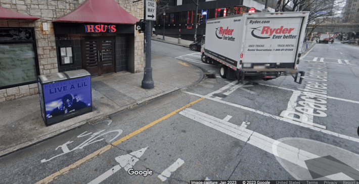 Garber explained that for the most part, the delineated lanes in the Atlanta sample gave way to standard crosswalks at multiple points, and that crossings didn’t have safety features like corner islands to tighten a motorist’s turning radius and make them more likely to see an oncoming rider. Without them, it was common to see drivers blocking the entrances and exits to bike lanes entirely, perhaps forcing riders to make dangerous maneuvers around them.