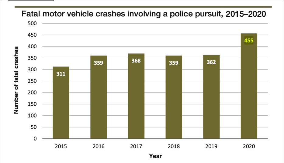 A DOJ report released last Tuesday found that police-involved crashes are on the rise across America, peaking at 455 in 2020 and prompting watchdogs to recommend that agencies adopt dozens of restrictions on when officers are allowed to reach deadly speeds. (It is not clear whether those stats include crashes that occur when a police officer is not in direct pursuit of a suspect, like Officer Dave, who was en route to a reported overdose when he struck Kandula.)