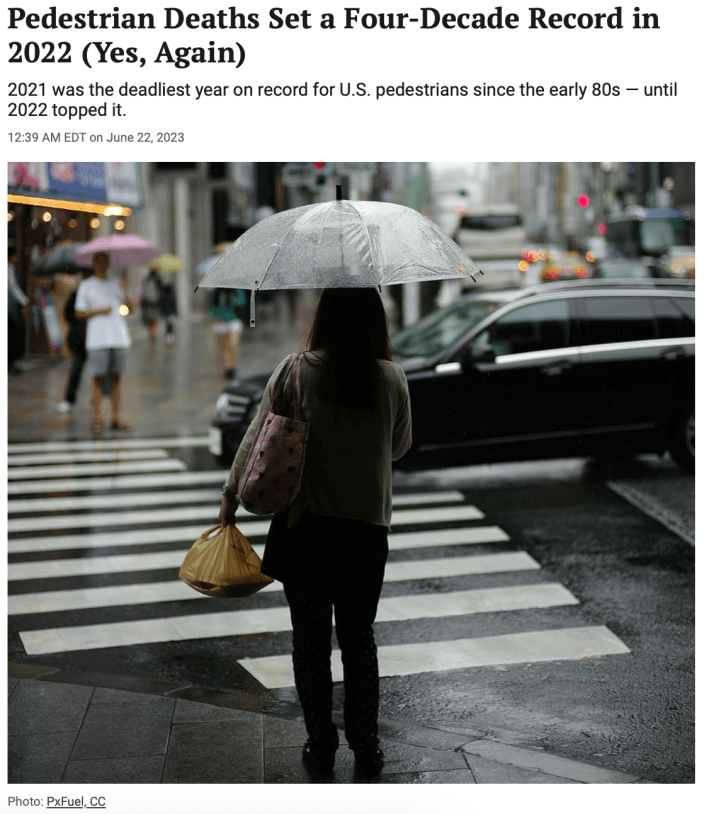 Pedestrian deaths were particularly bleak, hitting their highest point in 41 years — even as evidence mounts that Americans are walking less than ever.