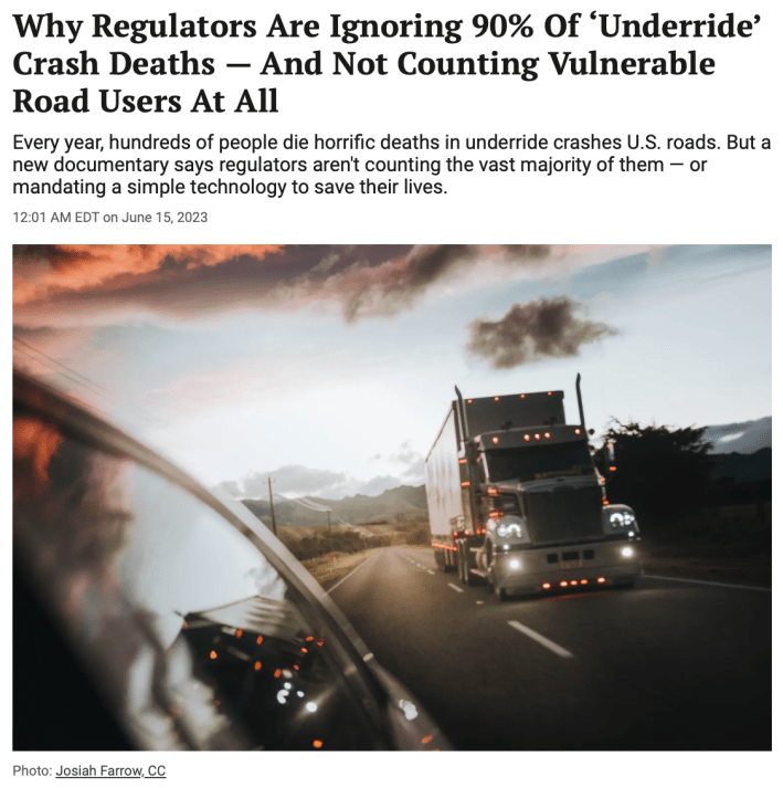 The National Highway Traffic Safety Administration, meanwhile, reportedly caved to pressure from trucking industry lobbyists and altered a critical report on “underride” crashes, wildly underestimating the number of lives lost in these grisly collisions and excluding the deaths of pedestrians and cyclists entirely. And when it came to civil crash settlements, pedestrian lives weren’t worth much at all, as evidenced by the shocking comments of a Seattle police officer who joked that the family of a woman killed by police officer in a crash could be paid off for just $11,000.