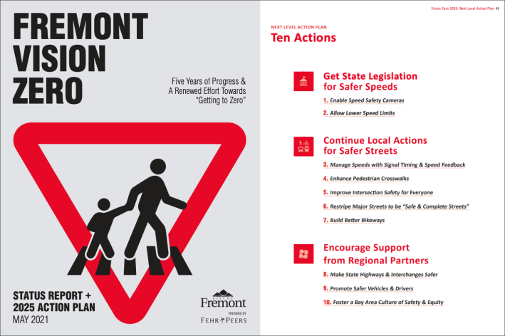 Lately, more local jurisdictions are demanding changes at the state level to help communities be safer and healthier places to live. For example, Fremont, Calif. integrates state-level policy changes into its Vision Zero Action Plan, including gaining ability to use speed safety cameras and authority over speed limit decisions.